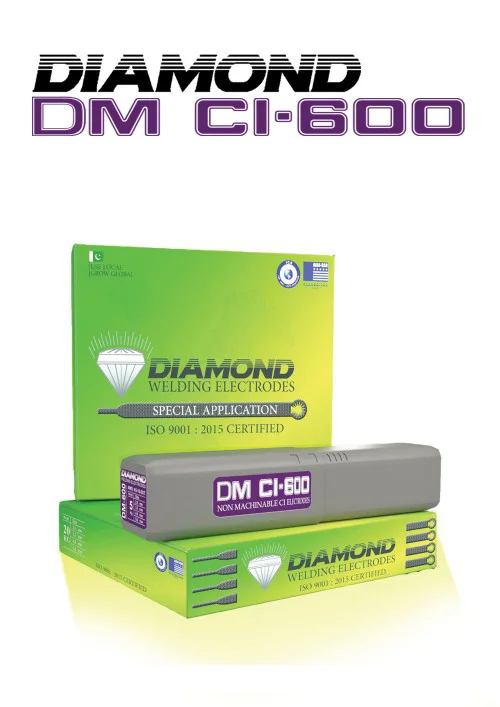 DM CI-600 is a graphite type coated electrode, depositing weld metal consisting of pure iron. It is designed for welding of cast iron when machining